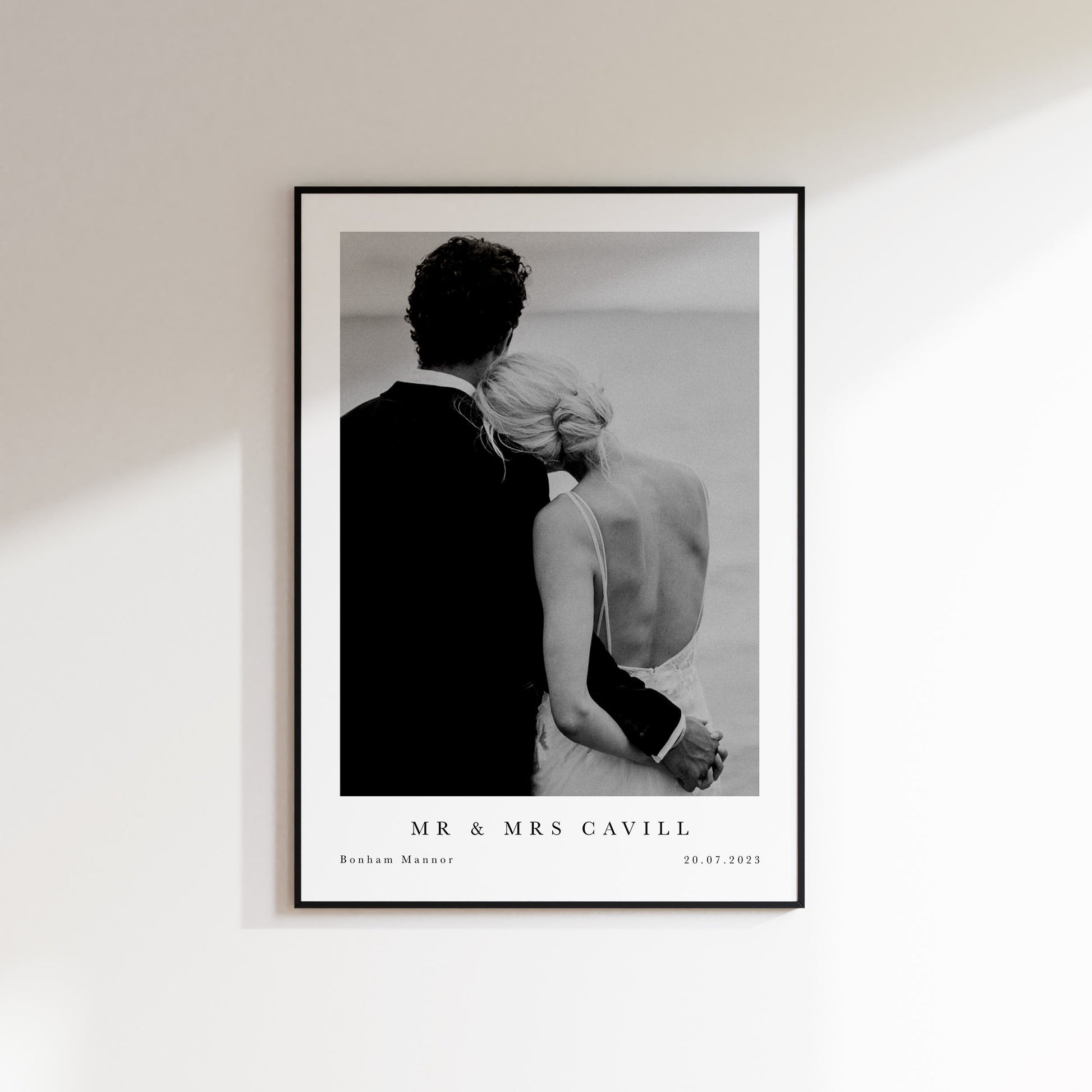 Transform your cherished memories into a unique piece of art with our personalised wedding name photo print, the perfect wedding gift for newlyweds or memory piece for your new home. This beautifully crafted print features a photo of your choice, complete with bespoke text chosen by you. This makes for the perfect way to remember locations, dates or any other special details of your favourite memory.