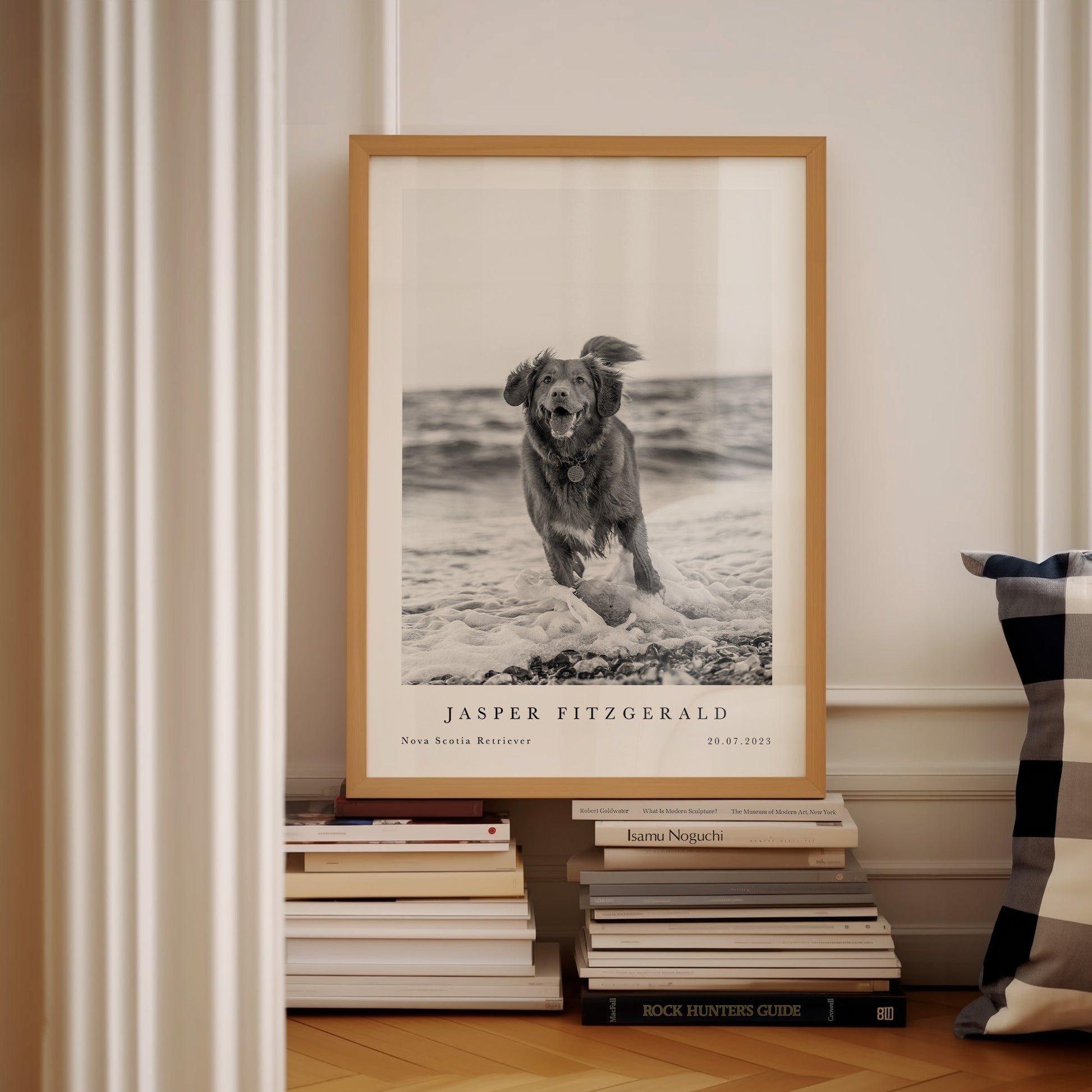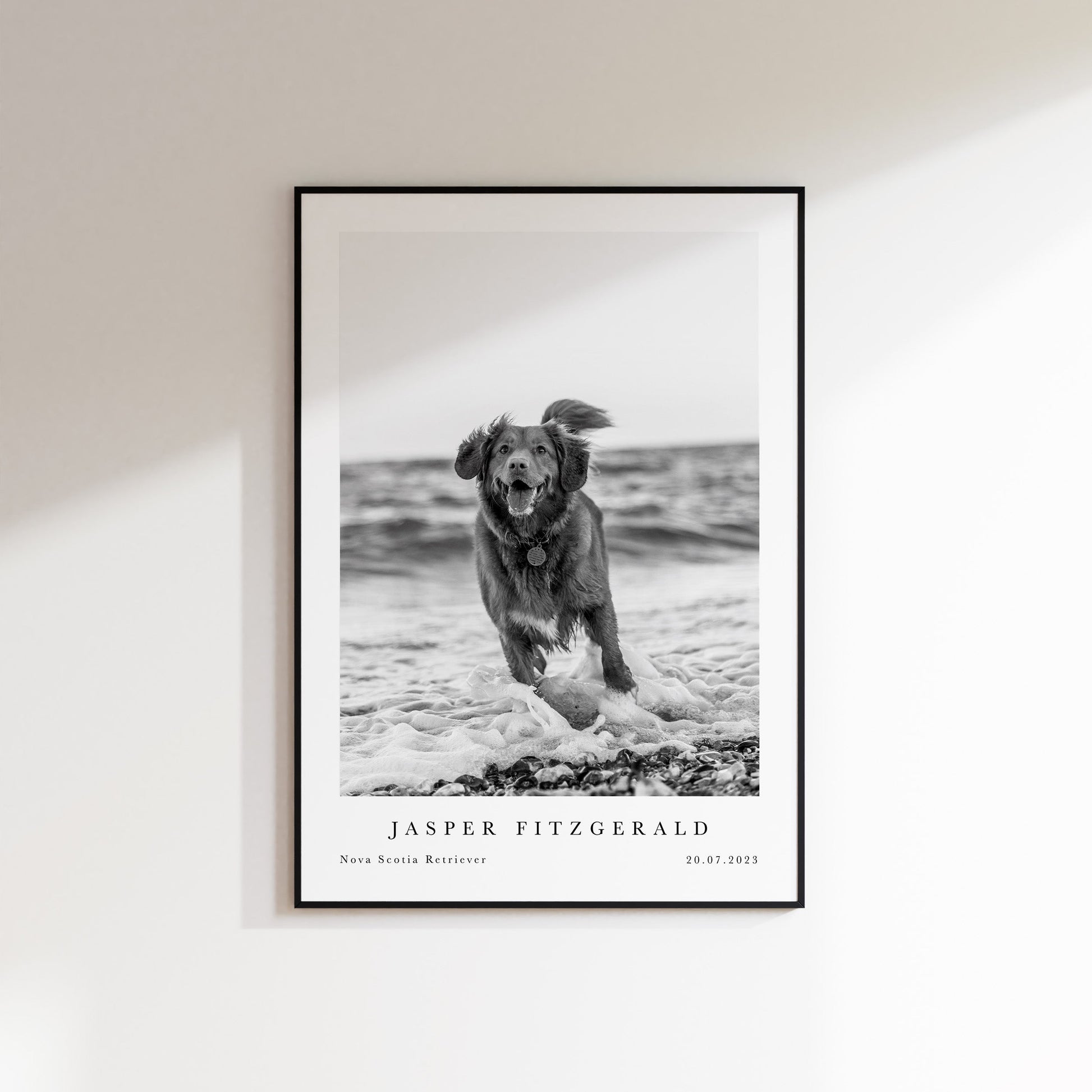 Discover our new pet photo print, the perfect gift for dog lovers and dog mums, or even as a pet memorial gift to remember that special companion forever. Our print is complete with a photo of your choosing elegantly edited into black and white for a sophisticated feel, along with their name, breed and a date of your choosing. Our pets are a vital part of families, so let's make them included as part of your home too! This is the perfect new home gift for couples, housewarming gift or print as part of a family portrait.