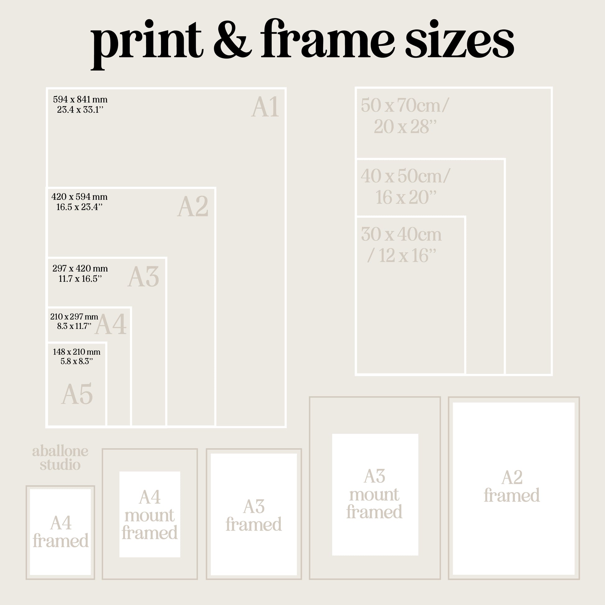 Our prints come in a matte finish available in a range of soft, classic colours to suit any room, adding a minimal and sophisticated feel. Printed on UK made speciality matt archival 230gsm paper for that luxurious feel and long lasting finish. Frames arrive wrapped in tissue paper unless gift wrapped.