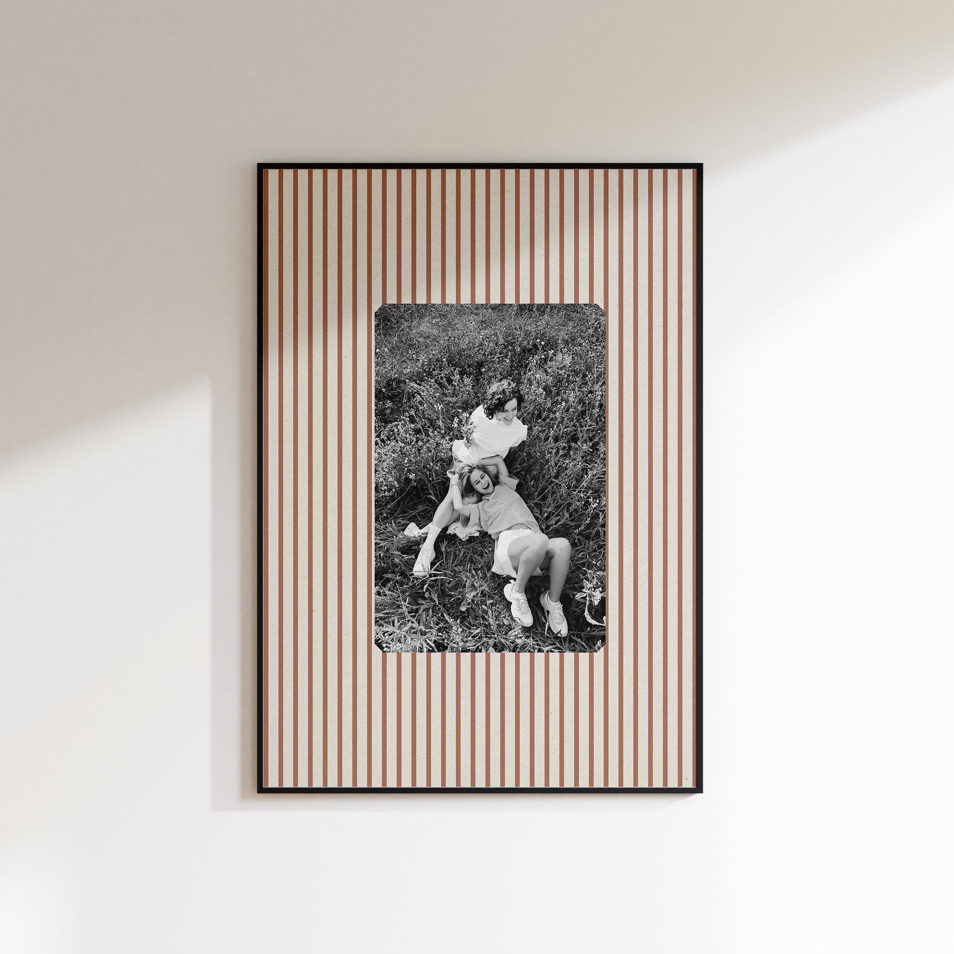 Discover our personalised stripe photo print, a timeless vintage inspired piece complete with a photo of your choosing, edited into black and white by us! With a soft, textured finish, this print echoes the classic look of linens and fabrics, combined with your most sentimental photos to create the perfect family portrait or a gift for your closest friends. This piece is a stunning addition to your wall decor, with a custom twist of adding your most favourite memories to your home.