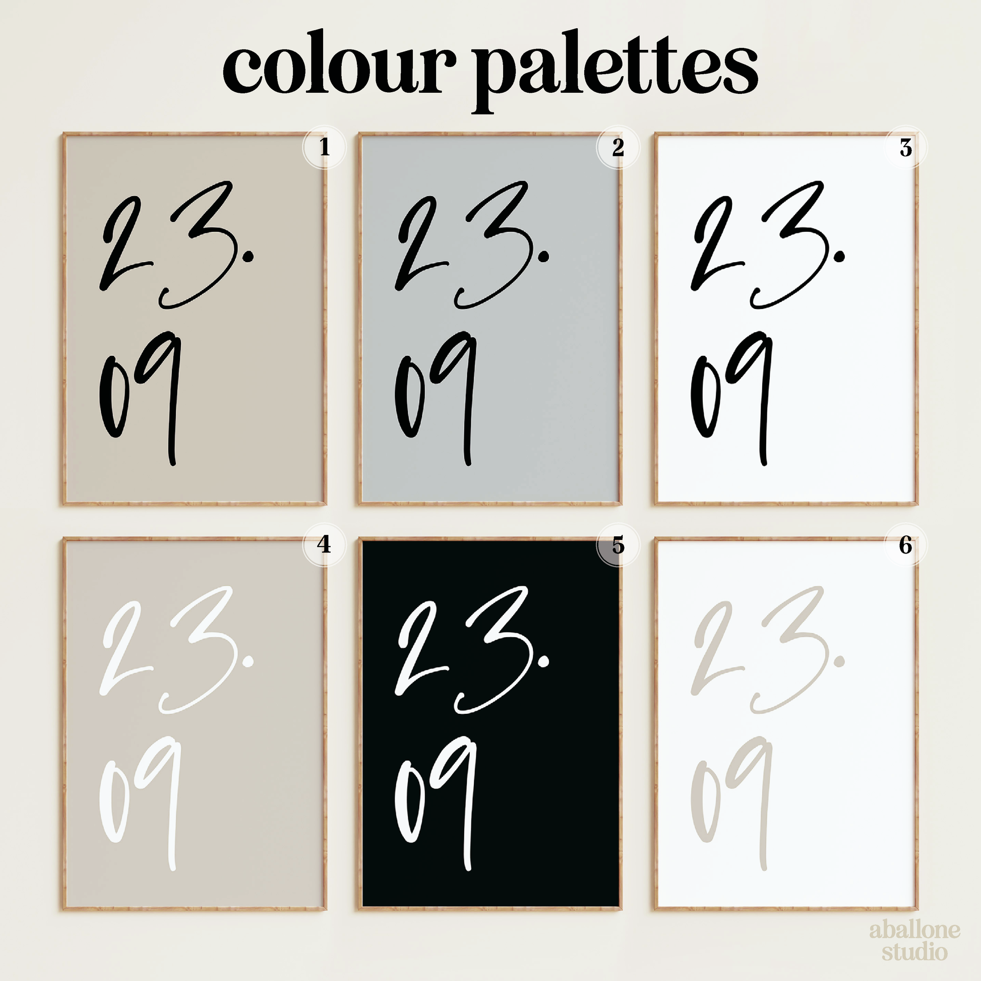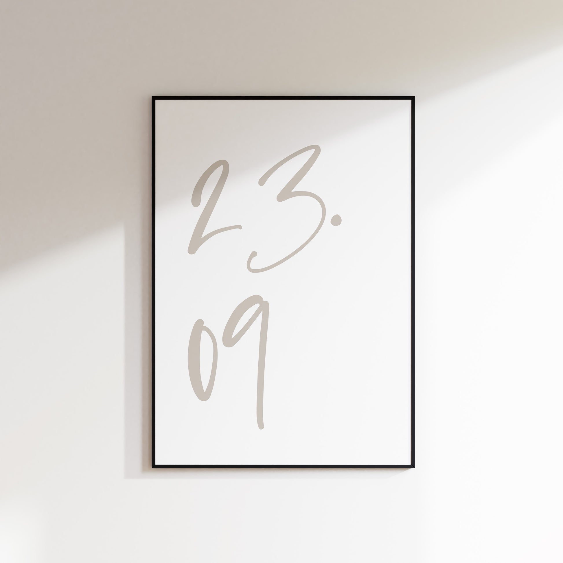 Our Custom Script Date Prints come in a matte finish available in a range of neutral soft and classic colours to suit any room, adding a minimal and sophisticated feel. Just add the date you would like on the print in the personalisation box when ordering alongside any frame colour you want if ordering a framed print.