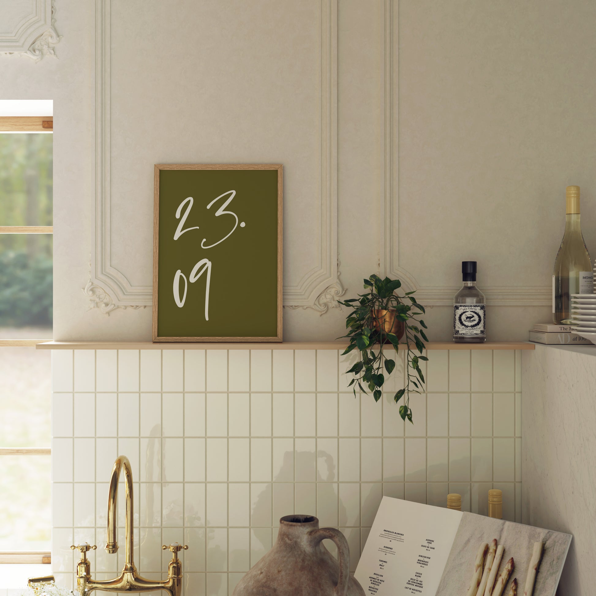 Our Custom Script Date Prints come in a matte finish available in a range of bold, classic colours to suit any room, adding a minimal and sophisticated feel. Just add the date you would like on the print in the personalisation box when ordering alongside any frame colour you want if ordering a framed print.